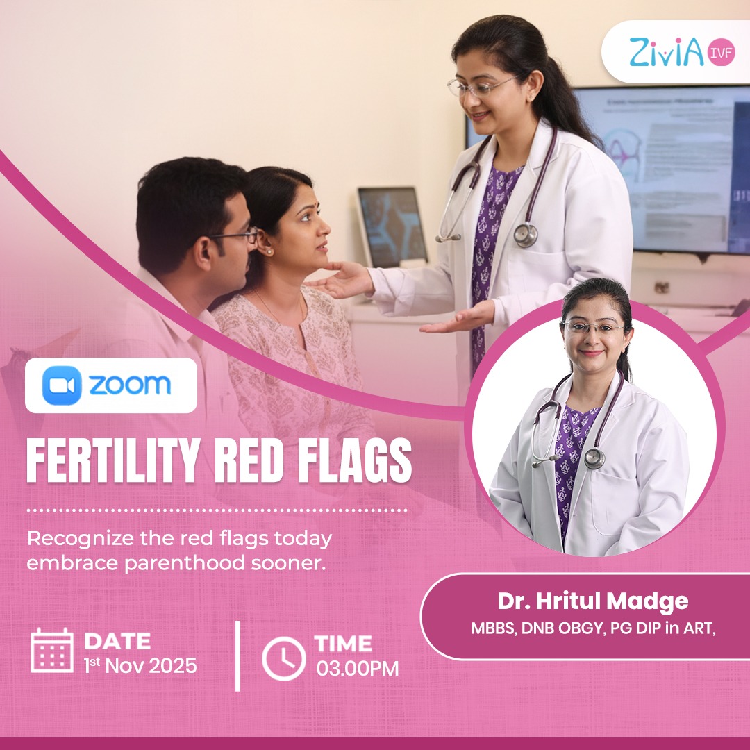 🩺 Speaker: Dr. Hritul Madge (MBBS, DNB OBGY, PG Dip in ART – Zivia IVF) 📅 Date: Saturday, 1st November 2025 🕒 Time: 03:00 PM (India Time) 💻 Platform: Zoom ✨ Don’t wait — learn to recognize the early signs of fertility issues today, so you can embrace parenthood sooner! 🌸 Register Now