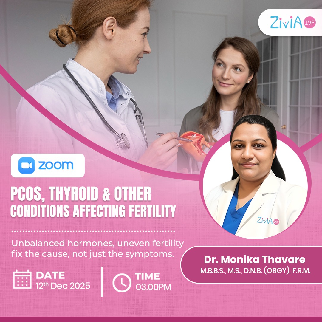 📅 Upcoming Webinar: PCOS, Thyroid & Other Conditions Affecting Fertility Join us for an insightful webinar focused on Unbalanced hormones, uneven fertility — fix the cause, not just the symptoms. Key Details: Topic: PCOS, Thyroid & Other Conditions Affecting Fertility Speaker: Dr. Monika Thavare Qualifications: M.B.B.S., M.S., D.N.B. (OBGy), F.R.M. Organized by: Zivia IVF Register […]
